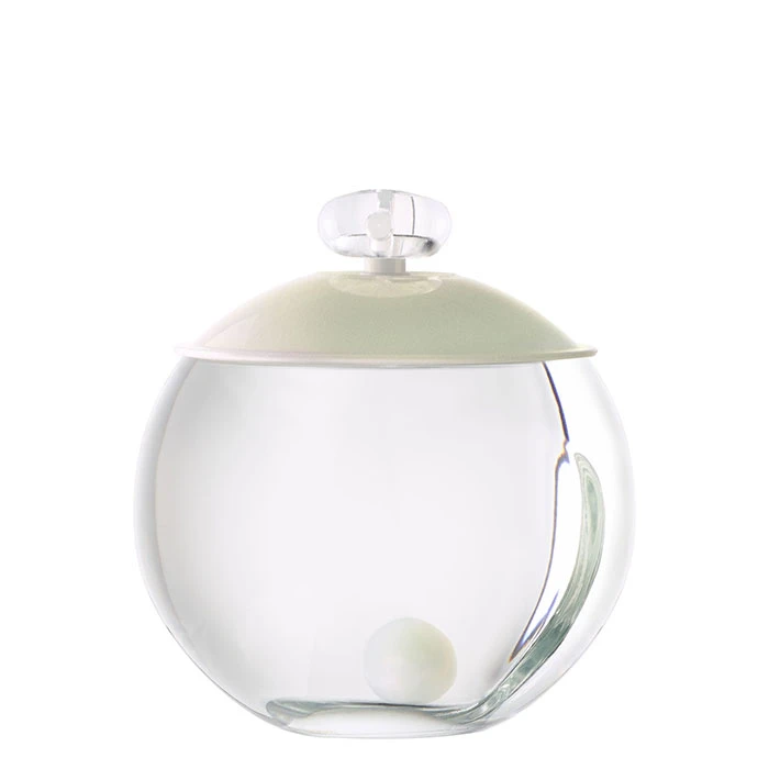 El frasco de este perfume es de vidrio y tiene una forma esférica que en su interior esconde una perla, sÃmbolo de feminidad, delicadeza y pureza. Sus lÃneas depuradas, su transparencia y el blanco lacado, nos transmite una sensación de paz y perfección.