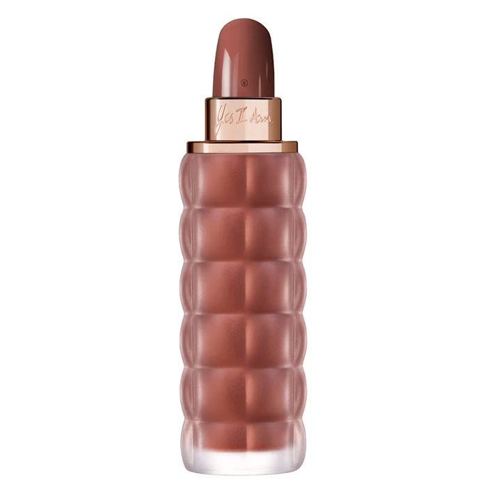 El frasco de Yes I Am Delicious sigue las mismas líneas de la colección, un cristal glaseado mate que imita la forma de una barra de labios en el que guarda su jugo chocolateado. Teñido en un color marrón chocolate, el tapón que corona esta deliciosa fragancia.