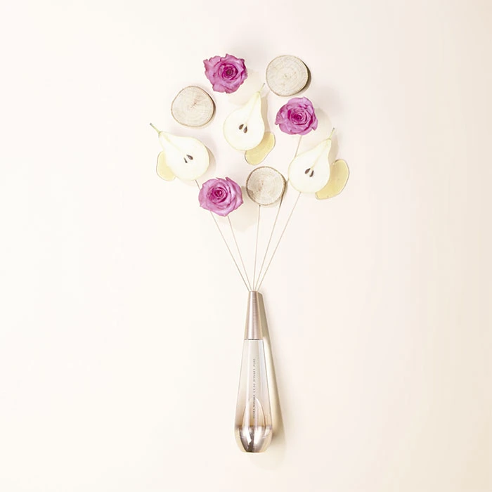El frasco de este perfume sigue las lÃneas y formas a las que nos tiene acostumbrados el diseñador Issey Miyake. La elegancia más pura y sobria se hace presente con un frasco de lÃneas simples que representan una gota de agua cuando cae. Formas curvas y femeninas que acaban en punta en su parte superior. La botella de vidrio transparente se tinta en un rosa degradado, muy femenino. La botella sigue representando la esencia más fresca y personal con toques de romanticismo. Coronando un tapón rosado y metalizado que da el toque de distinción perfecto.Â