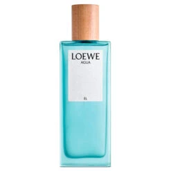 El jugo de Loewe Agua Él EDT aparece encapsulado en un frasco de vidrio traslúcido en un color azul muy sereno que transmite calma. Los frascos de Loewe quedan unidos por un único símbolo de líneas rectas y elegantes con el tapón de madera, juntos crean la unión perfecta para celebrar la artesanía, la emoción y el ser humano.
