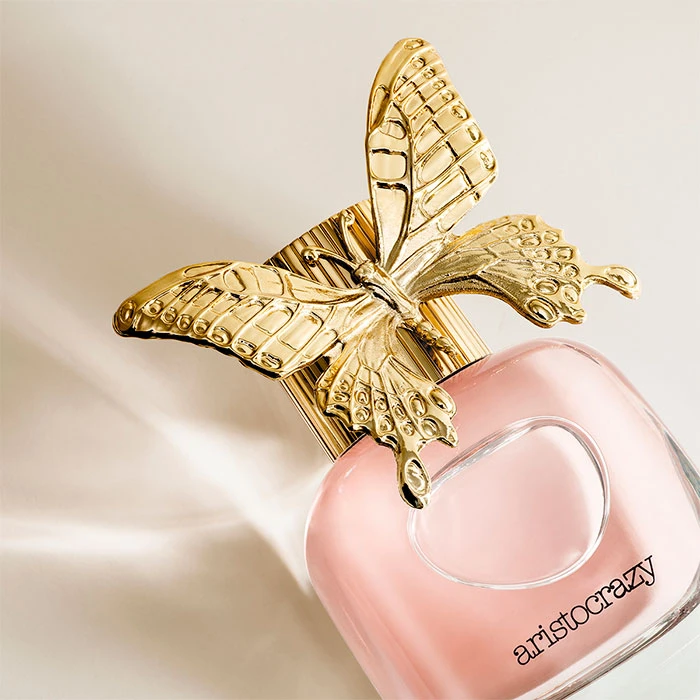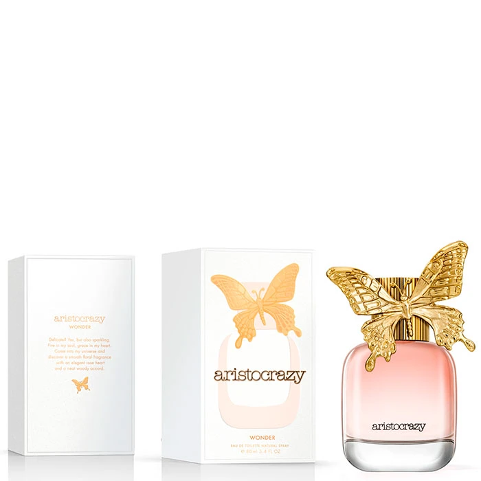 El lujoso frasco de Aristocrazy Wonder está realzado por una magnifica mariposa dorada brillante, posada sobre el tapón joya de la botella. El vidrio es transparente, de lÃneas redondeadas y sofisticadas, en su interior guarda un jugo cálido y rosado. Wonder, el fuego en el alma y la elegancia en el corazón.