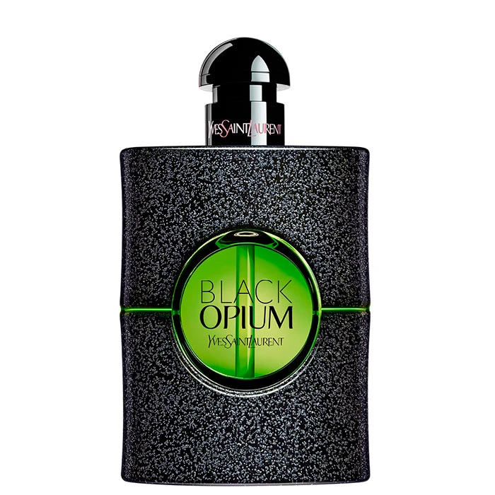El frasco de YSL Black Opium Illicit Green Eau de Parfum se viste esta vez de un atrevido y audaz tono verde neón rompiendo con los códigos de la perfumerÃa tradicional femenina. Un frasco más alargado que evoca a la enérgica y excitante adicción de sus ingredientes nobles.