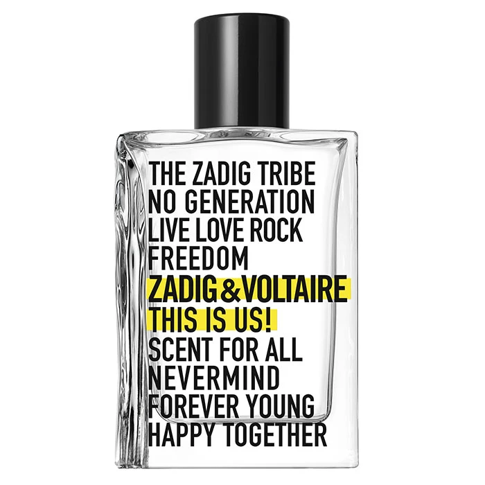 La tribu This is Us! de Zadig, la forma un grupo de amigos de mujeres, hombres, adolescentes y niños. De espíritu despreocupado con un estilo de vida relajado con el deseo de ser feliz y ser feliz juntos. Una colección de fragancias a la que no le importa la edad y el género, no existen las fronteras.